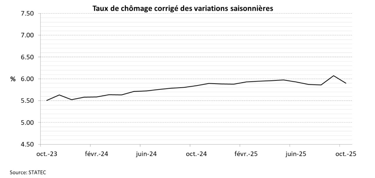 The seasonally adjusted unemployment rate, calculated by STATEC, stands at 5.9%.
