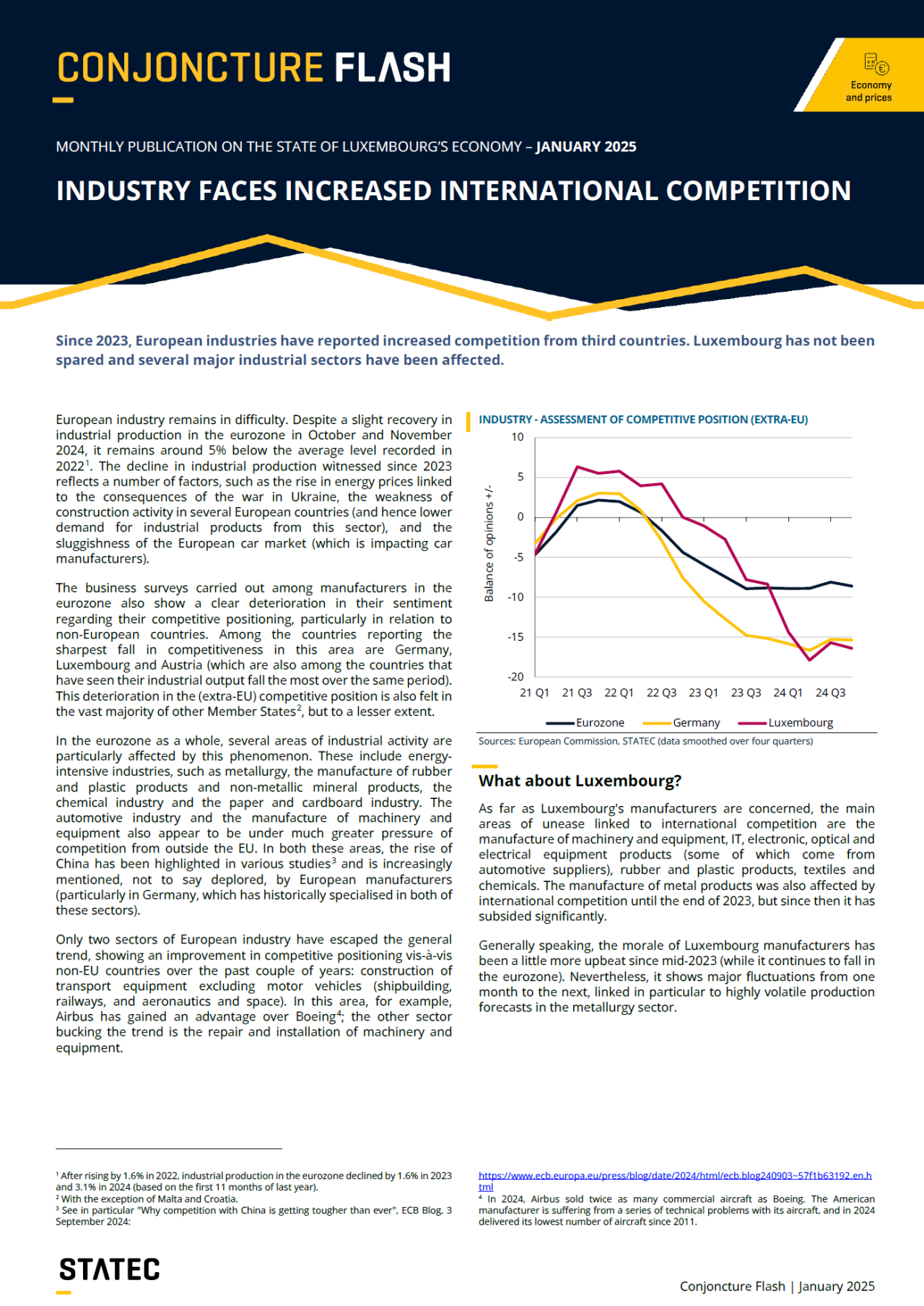 Conjoncture Flash January 2025: Industry faces increased international competition