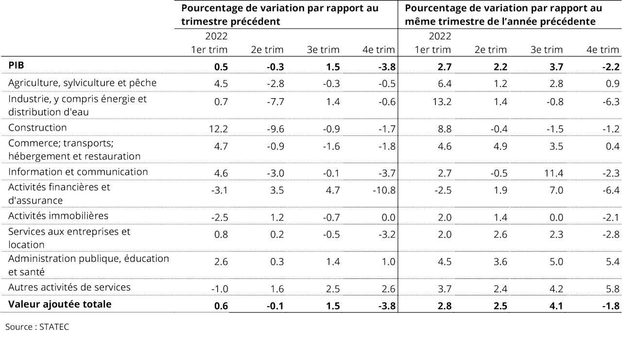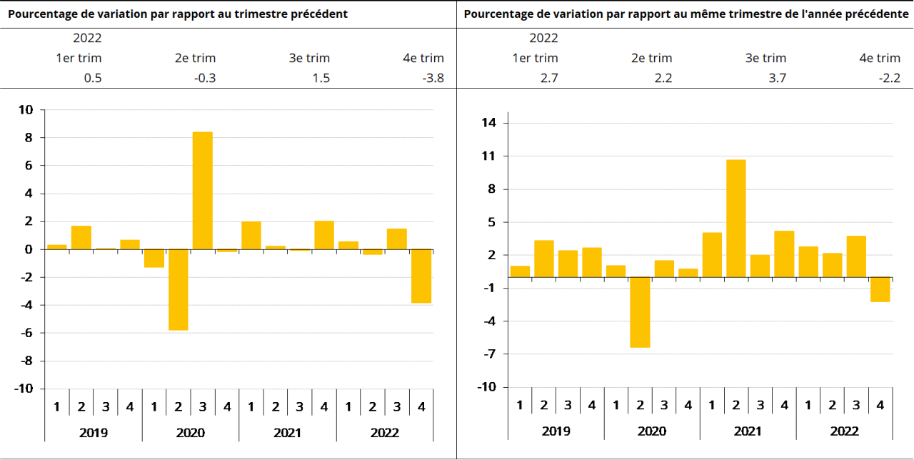 PIB en volume pour le 4ème trimestre 2022: -3.8% par rapport au trimestre précédent
