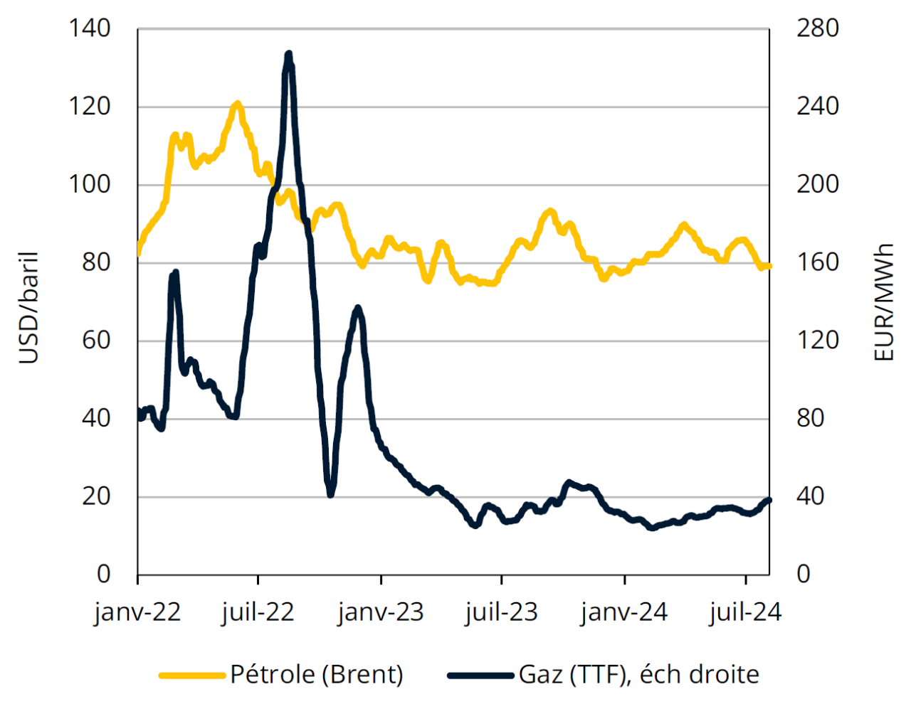 Comparé à la crise énergétique en 2022, les prix du pétrole et du gaz sont relativement stables depuis la mi-2023, malgré les tensions géopolitiques persistantes en Ukraine et au Moyen-Orient.
