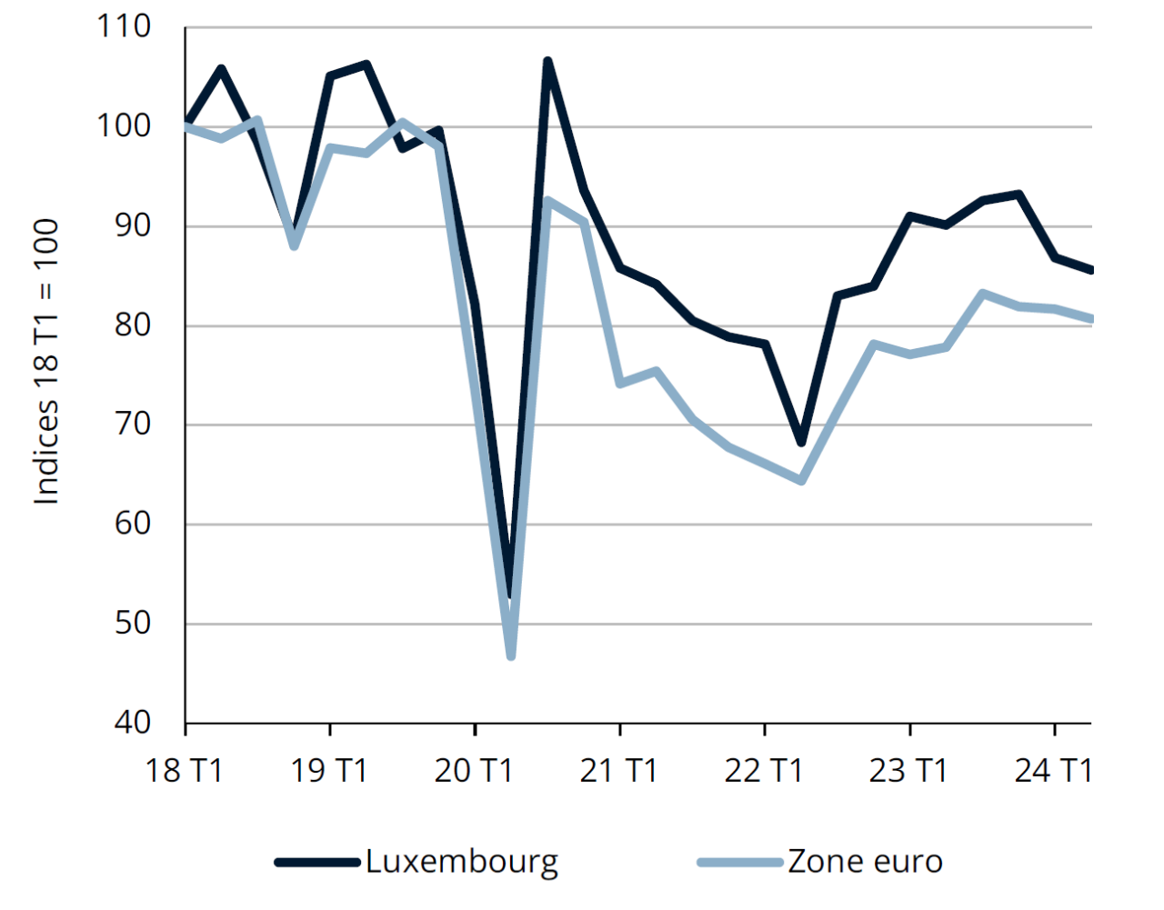Sources: BCE, STATEC (données lissées sur 2 trimestres)