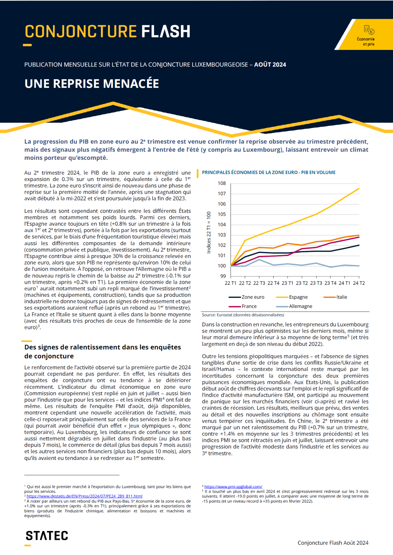 Conjoncture Flash Août 2024 : Une reprise menacée