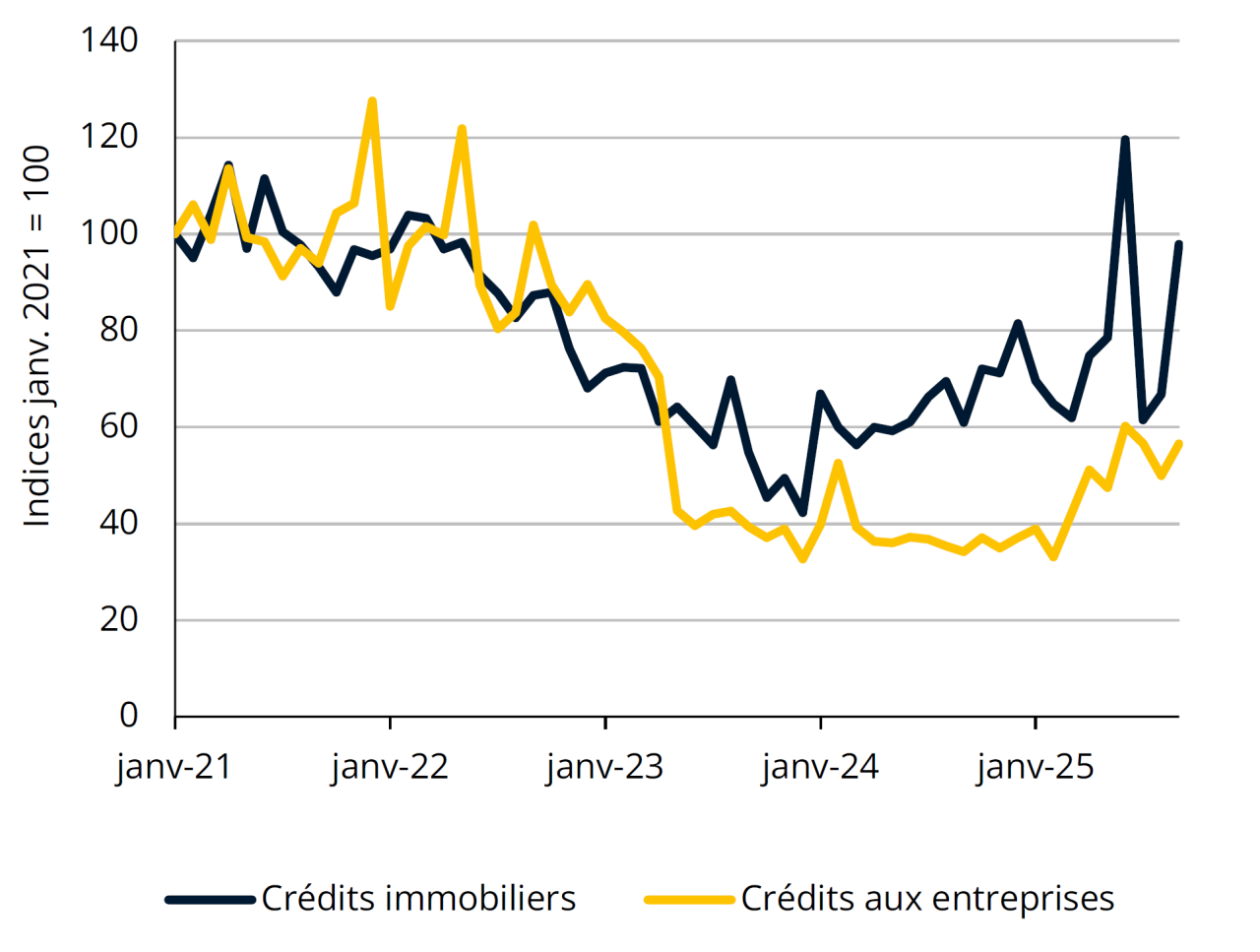 Pour le 4e trimestre 2025, les banques anticipent une stabilisation de la demande de crédits des ménages et des entreprises.
