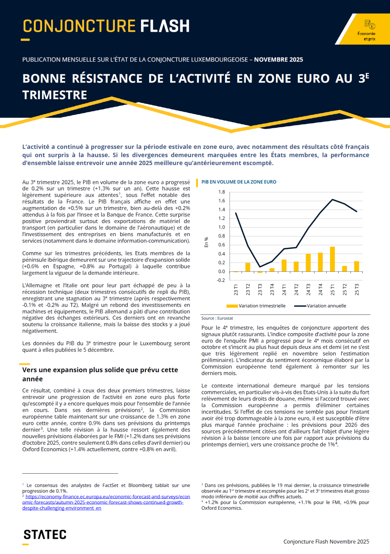 Conjoncture Flash Novembre 2025 : Bonne résistance de l'activité en zone euro au 3e trimestre