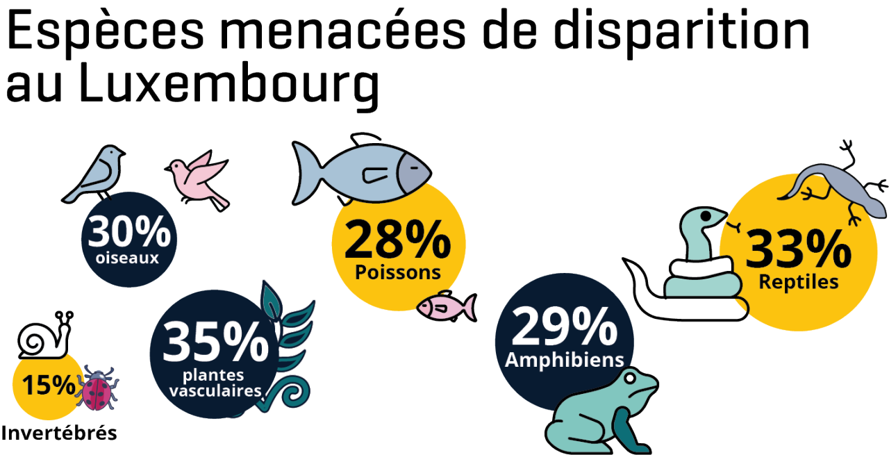 Edition 2025Pour la première fois, le STATEC publie un tableau de bord complet sur la biodiversité à travers sa publication « La biodiversité en chiffres ». Cette publication de 48 pages offre à travers des graphiques, des infographies et de brèves analyses, des repères essentiels et fiables pour comprendre comment la biodiversité change et évolue.